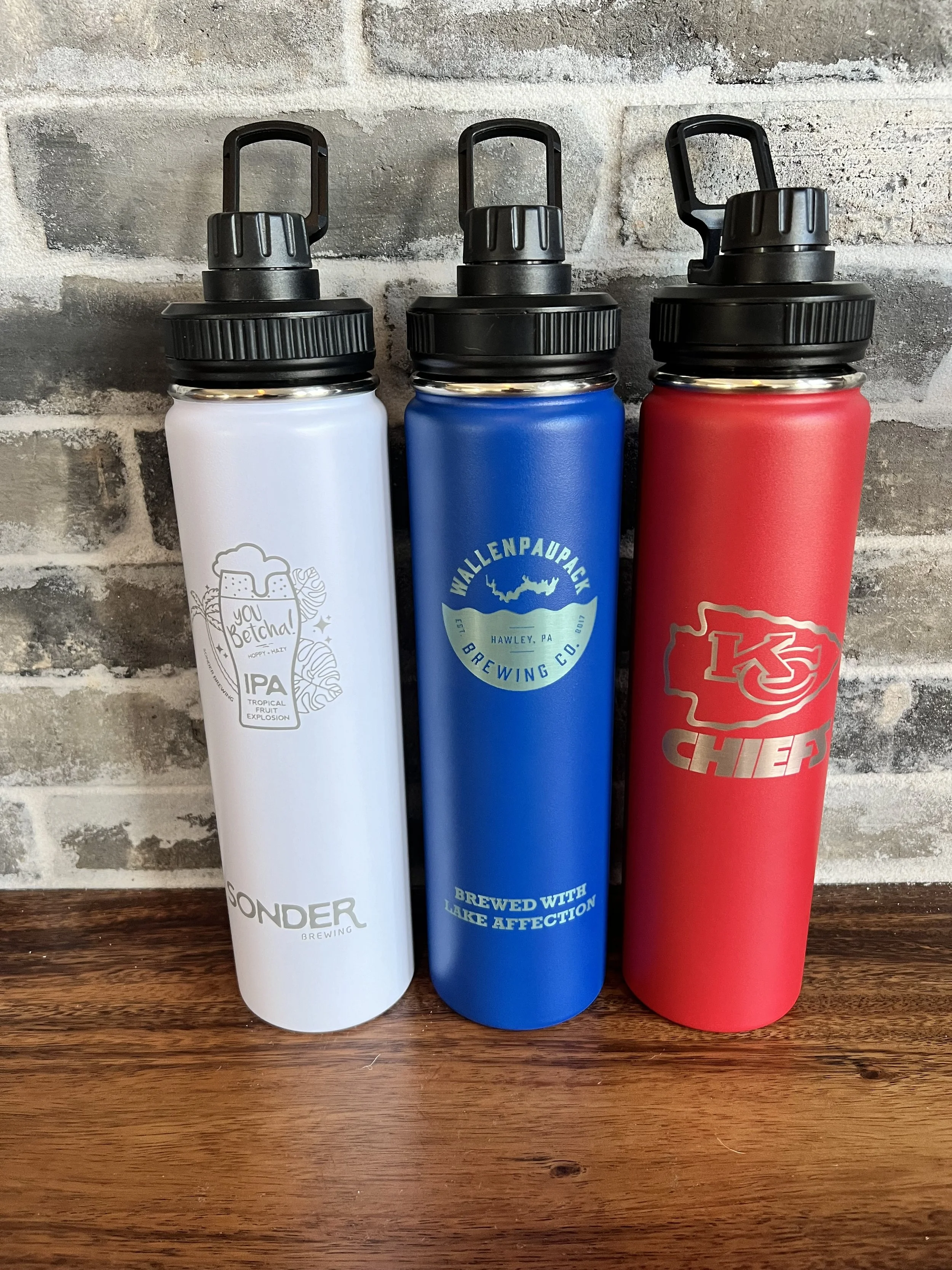 Bottles24 oz. bottle with flip lid.10+ units with logo only- $13.50 each10+ units with logo and Name- $16.50